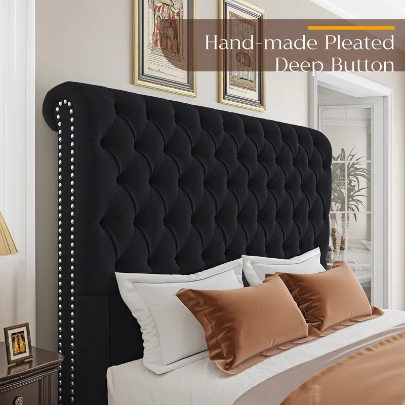 Jocisland Queen Size Upholstered Bed with Sleigh Headboard and Button Tufting